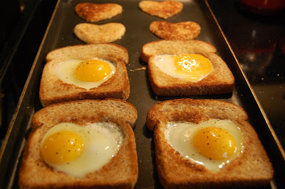 You can call them whatever you want. I’ve heard them called ‘eggs in a basket’, ‘chicken in a nest’, ‘eggs in a frame’, ‘bulls-eyes’, and now even ‘toad in a hole‘ (thanks to Amy at New Nostalgia).