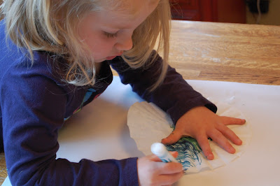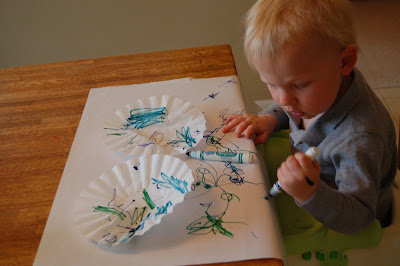 I finally did think of a easy not too messy Earth day craft this morning. 🙂 We have to make Easter treats and dye eggs today and tomorrow, so I wanted the Earth day project to be as low key as possible.