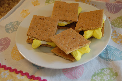 I saw these at Simply Designing. Such a simple and cute idea. She had a whole week of peep ideas. I love peeps AND smore’s, so it seemed like a logical combination. I melted them in the microwave for a few seconds. The kids thought it was delicious. A special Spring-y Easter-y treat.