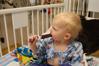 FINALLY feeling better on the last day. First fluid…popsicle. Laughing at Yo Gabba Gabba. (Thank goodness for Yo Gabba Gabba! If I had to watch one more episode of Thomas or those weird Wonder Pets…..I was going to loose it)
