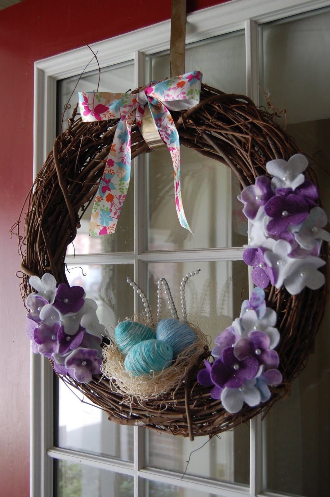Then I glued all these pieces to the grapevine wreath. I actually really like the felt, yarn and pearl pieces with the natural look of the grapevine wreath. Who knew.