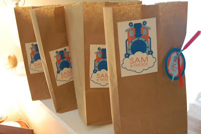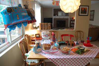 I was also able to save some time and cash by re purposing some of the awesome decorations that Tracy made for Luc’s party who turned two a few months ago! The colors she used were the same as the colors of Thomas! Good luck. Recognize that banner and those goodie bags!!? haha. Thanks Tracy! (So, I plan on doing that every year.) Good thing you have such good taste. 🙂