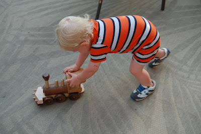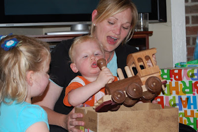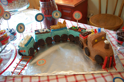 He got great train related gifts from everyone! He was in Choo Choo heaven.
