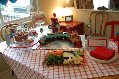 We decided to have a train party for Sam’s second birthday! He has recently entered his bizarre-unexplainable-two-year-old-boy obsession with all things Choo Choo, so we thought it would be fun. (Plus Choo Choo rhymes with TWO!) ha.