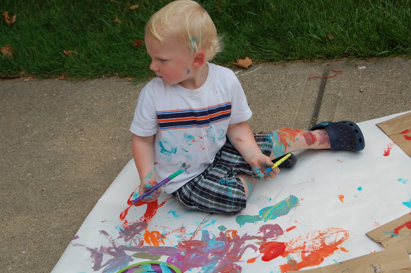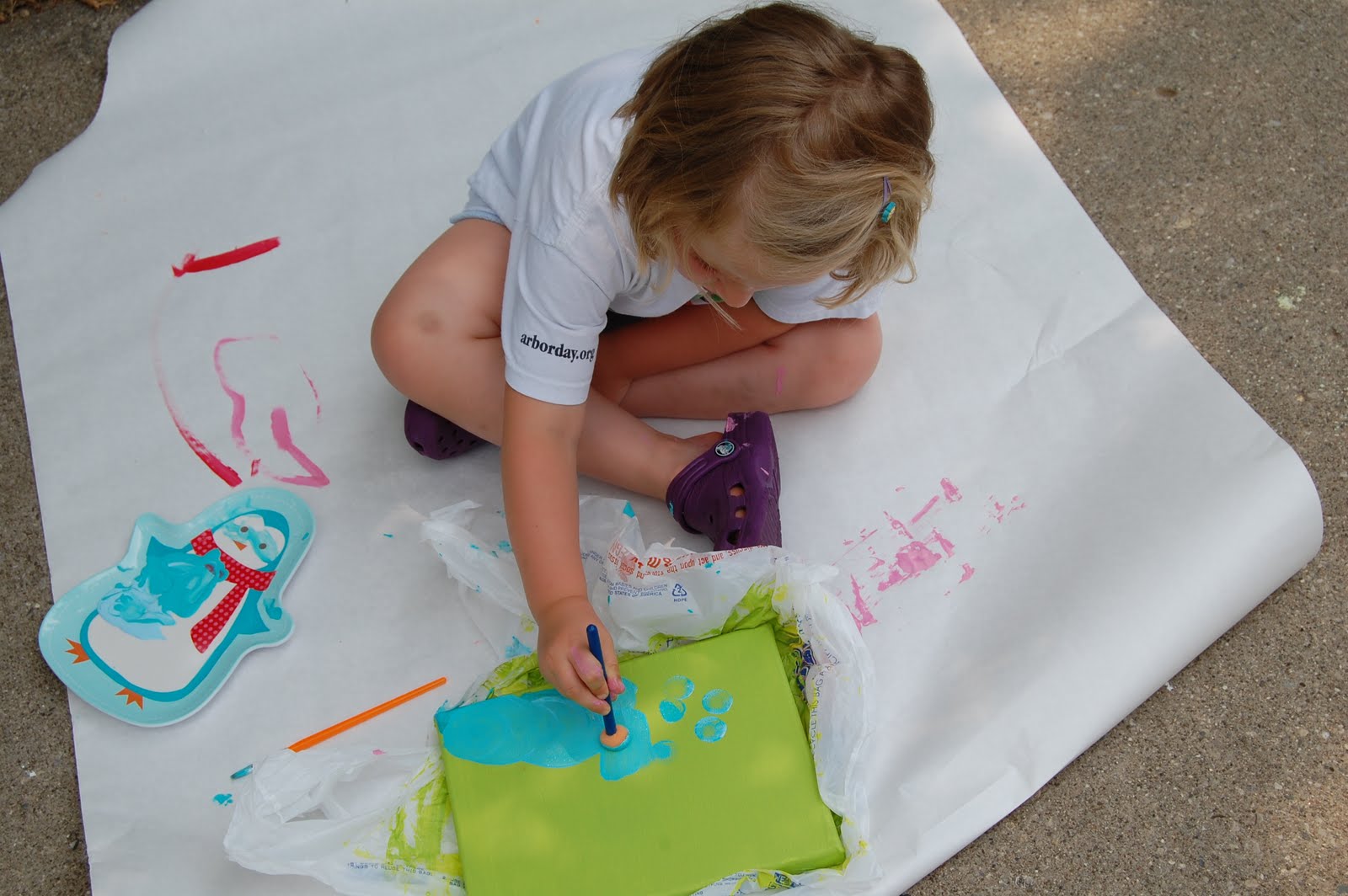 Then I let the kids have at it. I let them pick two colors per canvas (so that they wouldn’t all just end up a muddled mass of brown). They had a blast and I think the canvases turned out really well.