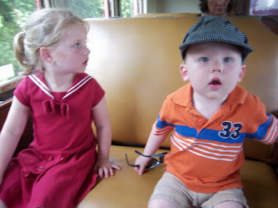 The day after Sam’s train party, we decided to give the Lebanon Mason Monroe Railroad a try. Kevin’s parents were still in town and we thought it would be a fun activity for a train birthday weekend! I’ve heard about it but had never been there. The LM&M is in Historic Downtown Lebanon. It’s a really quaint downtown. I’d like to go back and shop! The LM&M is one of the oldest locomotives still operating and the open window commuter coaches that you ride in are from the 30’s. It was really fun. The kids L.O.V.E.D. it! Especially the bean. He said “Choo Choo” about a million times. You can see him saying it in just about every picture! Funny.