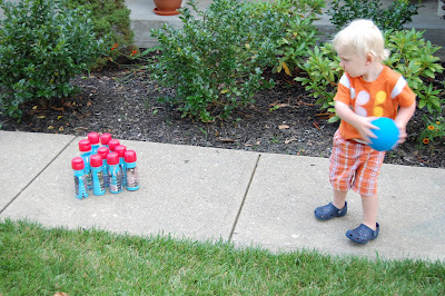 Ha ha – poor bean. He tried so hard. The ball is pretty bouncy, and it kept bouncing over the pins. It was so funny to watch. He was very determined.