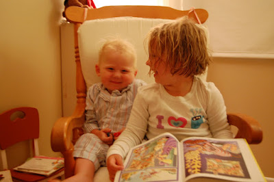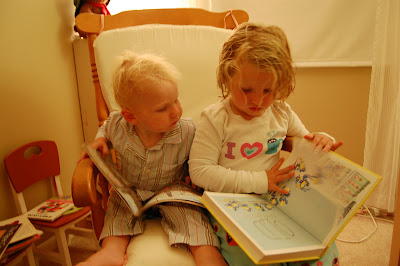 My kids. Clean and fresh right out of the bath. In jammies. Getting along. Reading books. Almost bed time (aka mama time).