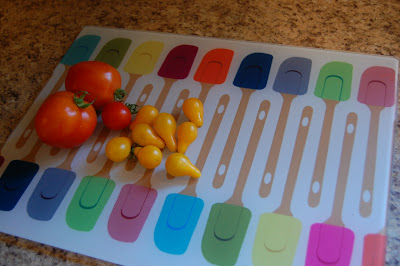 And just look how happy it is to be sitting in my kitchen with the tomatoes that I just picked from my garden! 🙂