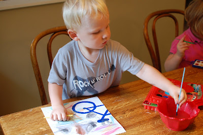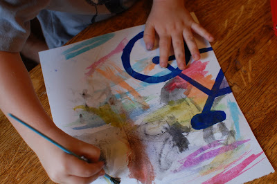 Then I just let them have at it with the water colors. The bean kept going to black and brown and the bird liked to fill in each space a different bright color. Cute.